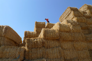 Después, Nájera. Un río, una sombra. Un Locus Amoenus en el que dejarse mecer por el sueño, pero también por el agua, por la sombra, por el almuerzo, y donde poder cuidar de sí mismo como de los reyes, con masajes, estiramientos, y pasos por la hierba. Después, reanudar el paso, pero como la noche anterior frente al frontal de la Iglesia de Navarrete, hacer imaginación del estilo, imaginar retablos, y poner fechas. En esta maravillosa Iglesia de Sta María el mismo rito, pero además aquí el plateresco de los arcos del claustro es un deleite; con sus personajes de los bosques, sus caricaturas, sus serpientes semianfibias, sus antorchas que iluminan las oscuridades nuestras, sus caballos que nos permiten cabalgar a otros mundos, sus querubines fingiendo, y así un largo etcétera de miles de historias que van de arco a arco. Después, la cueva de Sta María, la leyenda del rey que la encuentra junto a una campana y azucenas y decide erigir una capilla en el siglo XI. Tengo que aprender de azucenas, me digo. Y de campanas, me contesto yo mismo. Y el sarcófago de una reina esculpida casi carne, capaz de arrancar una emoción, y unas lágrimas, a aquellos ojos capaces de ver donde reside el secreto de lo bello. Y así, a destiempo como en la entrada anterior, un camino acompañado por entre las luces naranjas de última hora de la tarde, entre viñas anaranjadas, espigas que terminan en lindas casitas de duendes, calabazas de ochenta kilos que los azofreños nos regalan "si las llevamos hasta Santiago" y un horizonte recortado en negro sobre naranja; Azofra, ya a última hora, con un albergue aún con plazas, como queriéndose reir de la prisa, en cuyo patio saludo con efusividad a cada uno de los miembros de la gran familia santiaguera; los chipriotas, los holandeses de Los Arcos y del encuentro múltiple, la pareja de alemanes de hace dos días desayunando junto a una linda capilla románica, la rubia y dulce alemana de pies destrozados que se mojaba los pies en la casa de Austria, la enorme teutona de pasos lentos, la familia de Logroño... Llegar es reencontrarse. Un destino es un reencuetro.Mañana quizá los pasos nos encuentren con las primeras luces del día. Más allá, Santiago.